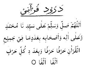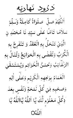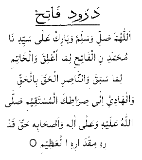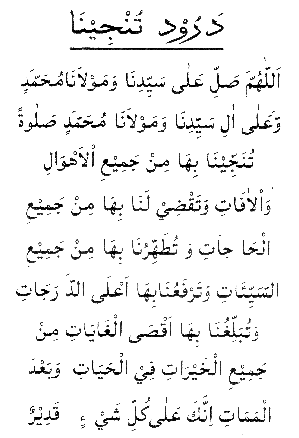 Paz y bendiciones sean con Muhammad, el elegido, y con todos los mensajeros y profetas que lo precedieron. Le enviamos paz mientras salga la luna y se ponga el sol, mientras los océanos se hinchen y soplen los vientos, y mientras haya quienes invoquen Tu nombre.